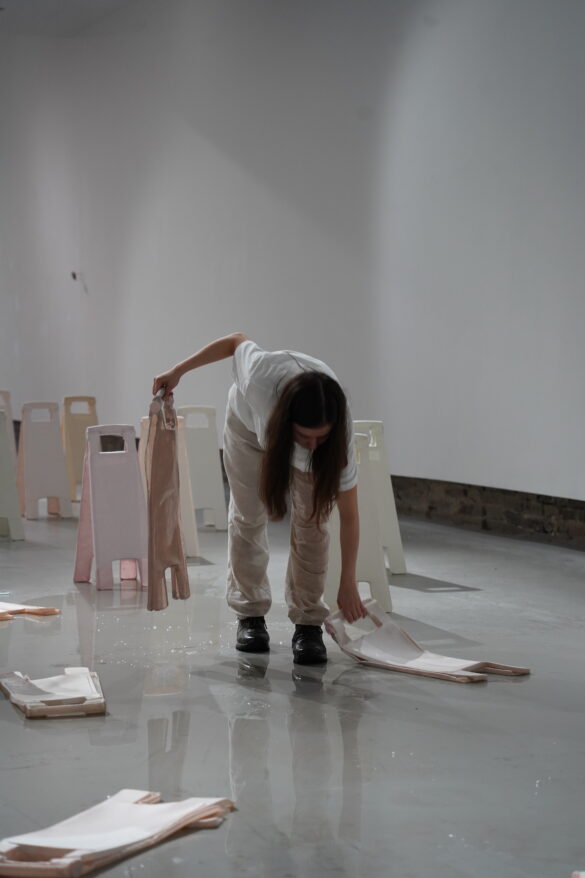 Isabella Whitfield transforms How to Recall a Message (2024) through performance on the closing day of her solo exhibition, Best Regards. August 10, 2024. Photo by Sandy Cheng.